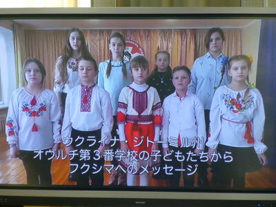 先日、ウクライナに向けて撮影したビデオレターの完成版を収めたDVDが学校に届き、5・6年生が一緒に視聴しました。6年生が卒業する前に見せたいと双葉屋旅館の女将である小林友子さんが届けてくださいました。ビデオレターは、撮影者のスタジオ・サードアイのすぎた和人さんが編集してくださいました。そして、このDVDにはウクライナの子どもたちからのビデオレターも入っていました。民族衣装に身を包んだウクライナの子どもたちが福島のことを思って一生懸命に話す姿を児童たちは真剣な表情で見つめていました。遠く離れた場所に暮らしていても互いを思いやる心の交流を今後も続けていければと思います。そして、1日でも早く戦争が終結することを祈るばかりです。