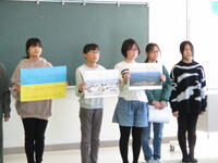 校長先生からは、「ウクライナでは今も戦争が続いている。クリスマスカードをいただき、今回このようなビデオレターを送ることになり、これからも交流が続いていくかもしれない。世界中の人たちが相手を思いやって交流することができれば、きっと世界から戦争はなくなる。」というお話をいただきました。