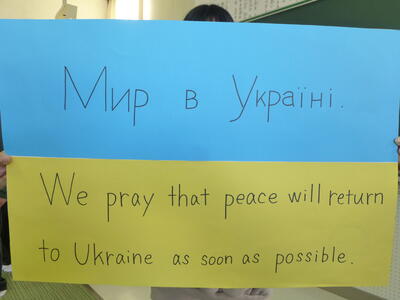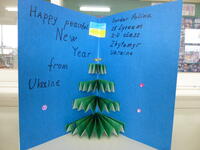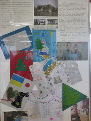ウクライナからは、毎年手作りのクリスマスカードをいただいてきました。ロシアによる爆撃で学校が破壊されるという過酷な状況下にもかかわらず、今年はクリスマスカードの他にニューイヤーズカードも送っていただきました。私たちの平和や健康を願うメッセージに心を動かされた児童は、何か行動したいという思いをもつようになりました。