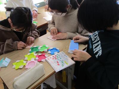 2月28日(火)は、児童会委員会の最後の日でした。保健給食委員会は、清潔検査の結果がよかったクラスに賞として渡すものを決めたり、図書委員会は「本の福袋」の準備、体育委員会は用具室の片づけや掃除、放送委員会は6年生へのインタビューの練習、美化園芸委員会はプレゼントする折り紙のお花の準備をしたりしました。6年生が4・5年生へ、「委員会の仕事をしっかり覚えて、4月からもがんばってください」と励ましの言葉をかけると、4・5年生は少し緊張した面持ちで「はい」としっかり返事をしていました。明日から3月。今度は4・5年生が中心となって児童会委員会の仕事をがんばり、小高小学校を良くしていってくれることと思います。
