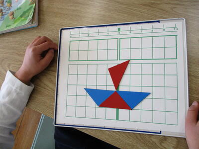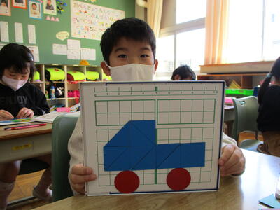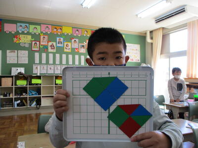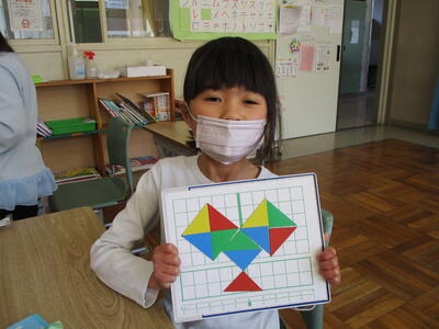 こうした経験が、上学年になってタングラムにつながっていきます。楽しみながら、算数の感覚を身につけていってほしいと思っています。