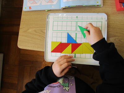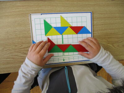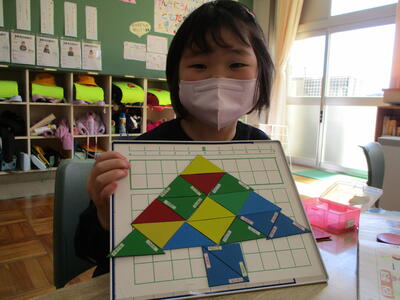 三角形の色板を組み合わせて、いろいろな形をつくります。