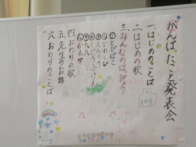 「とびばこ」「なわとび」「けんばんの演奏」「都道府県クイズ」「九九」「漢字」など、自分ががんばったことをお友達やお家の方の前で、堂々と発表することができました。