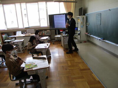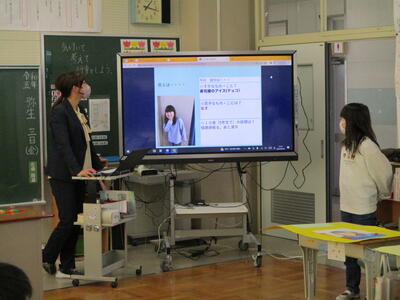 2月21日(火)5・6年生は、ウクライナへのビデオレターを撮影しました。ビデオレターは2月23日(木)に小高生涯学習センターで開かれるウクライナ支援チャリティ報告会でウクライナに向けて配信されます。今日は小高区の双葉屋旅館の小林友子様、スタジオ・サードアイのすぎた和人様が来校し、撮影が行われました。