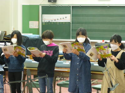 1年間で学習した曲を、おうちの人の前で歌ったり合奏したりして発表しました。