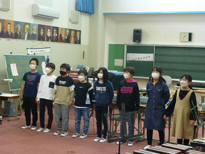 演奏した曲は、「いつでもあの海は」「世界がひとつになるまで」「威風堂々」など全11曲。子どもたちは、これまで学習してきた成果をおうちの方に伝えようと一生懸命に表現しました。おうちの方々はリズムを取りながら聞き入っていました。