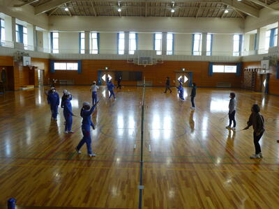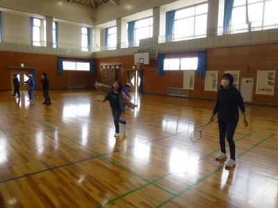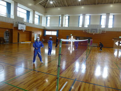 6年生の体育は、親子でバドミントンに取り組みました。はじめに親子でシャトルを打ち合って練習を行い、その後、親子ペアでのダブルスや親対子のゲームをして楽しみました。あちこちから歓声が聞こえてくる楽しい時間となりました。卒業まで学校生活もあとわずかになりましたが、また一つよい思い出を作ることができたのではないでしょうか。