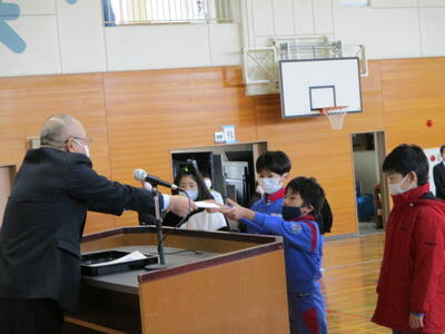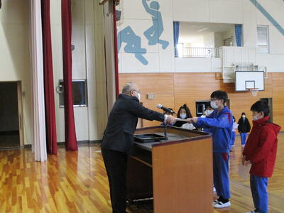 校長先生から、賞状や記念品を渡してもらった子どもたちは、とてもうれしそうにしていました。これからも、いろいろなことに挑戦していってくださいね。
