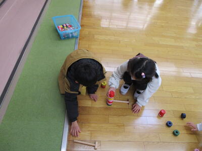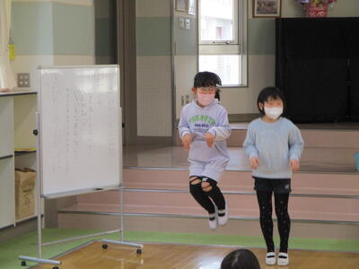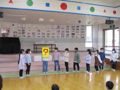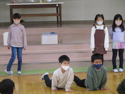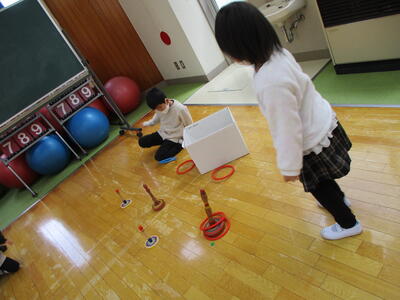 保護者の方が説明会に参加している間に、新入児童と1年生の交流会が行われました。お世話をする1年生は大はりきり。自分たちで司会をして、動物ジェスチャーゲーム、へんがお、お手玉、ボーリング、輪投げ、だるま落としでおもてなしをしました。自分たちが遊ぶことより、楽しんでもらうことを優先している姿はりっぱなお兄さんお姉さんでした。進級に向けて、また1つ大きく成長できました。4月になるのが楽しみですね。