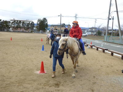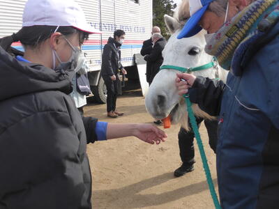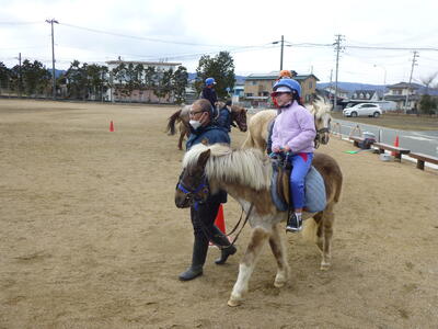 牧場長の山根様やスタッフの方々から丁寧にご説明いただきながら、乗馬や餌やりの体験を行いました。初めて馬に乗る児童もいて、初めは怖がっていましたが、徐々に慣れてとても楽しそうにしていました。馬とふれあうことで子どもたちは自然に笑顔になっていきました。貴重な体験をさせていただいた小貝川ポニー牧場、市観光交流課の皆様、どうもありがとうございました。