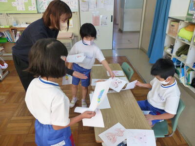 とってもかわいらしいです。「これ、わたしの!かわいいでしょ」「ぼくのもすごいでしょ」と嬉しそうに作品をみせてくれる子どもたち。