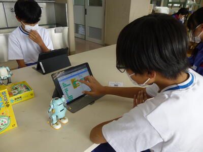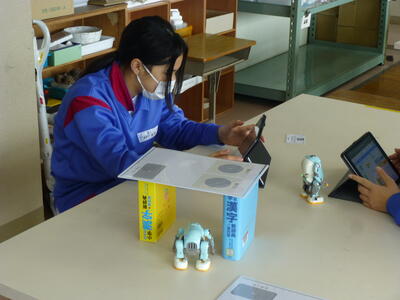 11月28日から始まった「あるくメカトロウィーゴ」を使ったプログラミング学習が最終日を迎えました。今日の6年生の学習は「ロボットのセンサーを使ってみよう」のテーマのもと、ロボットに搭載された距離センサーや照度センサーを使って、障害物を避けたり、周囲の明るさによってロボットの動きを変えたりするプログラミングに取り組みました。どの児童もこれまでの学習の成果を発揮しながら、楽しく学習に取り組んでいました。