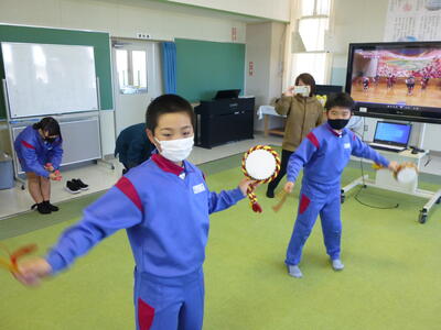 村上田植え踊り保存会の方々にご来校いただき、4・5年生が田植え踊りを習いました。5年生は昨年に引き続き2回目となります。昨年習ったことを思い出しながら、上手に踊ることができたようです。1時間という短い時間ではありましたが、初めて体験する4年生も講師の方々の熱心なご指導のおかげで振り付けを覚え、踊ることができました。地域の伝統文化に触れる貴重な体験となりました。保存会の皆様、ありがとうございました。