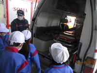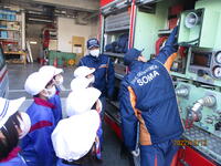 3年生が南相馬消防署小高分署を訪問し、消防署見学を行いました。社会科の「火事からくらしを守る」の単元で教室で学習したことを実際に見て体験することによって、さらに学びを深めることができました。実際に防火服を着て消火用の器具を持った子どもたちは、「こんなに重いものを持って消火しているなんてすごい!!」と驚いていました。ていねいにご説明いただいた小高分署の皆様、ありがとうございました。