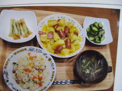 「朝早起きしてお家の人と作ったよ」「野菜は、おじいちゃんおばあちゃんの畑のだよ」「うちで育てたピーマンを使ったよ」など、一生懸命ながらも、楽しく作ったことが伝わる言葉がたくさん聞かれました。5~6年生はもちろんのこと、宿題ではなかった1~4年生のご家庭でも熱心に取り組んでいただき本当にありがとうございました。
