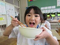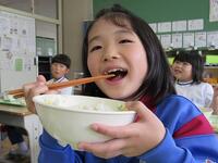 今日の給食のご飯は、東京にある台湾企業 永賓株式会社様より寄贈していただいた南相馬市産のお米です。市内の子ども達へ給食用にと、1トンものお米をいただきました。そこで今日は、「ルーロー飯」や「豆花」など台湾にちなんだ献立です。台湾を感じながら、感謝の気持ちをもって、おいしくいただきました。