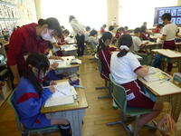 各学年数人のグループに分かれ、原町一小の各クラスに入って1日2時間ずつ授業に参加しました。初日は緊張した様子が見られましたが、2日目からは積極的にグループ活動に加わったり、挙手して発言したりする児童の姿が見られるようになりました。休み時間には、原町一小の児童と一緒に楽しく遊び、親睦を深めることができました。
