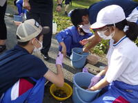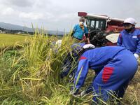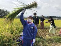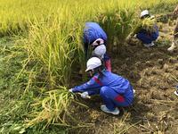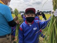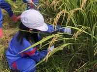 10月3日(月)5年生が稲刈り体験を行いました。小高区片草にある農業法人「大地のめぐみ」の南原様にお世話になり、5月に田植えを体験した田んぼで、稲刈りをさせていただきました。子どもたちは、初めて手にする稲刈り鎌を使って恐る恐る刈り取りをしていましたが、だんだんと慣れ、20分間で200株ほどの稲を刈り取ることができました。へとへとになった子どもたちからは「昔の人はこれを全部手で刈り取りをしていたなんて信じられない」といった感想が聞かれました。