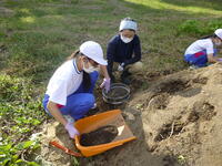「これ,化石かなあ。」「こすると粘土が出てきた。」といろいろな発見があったようでした。