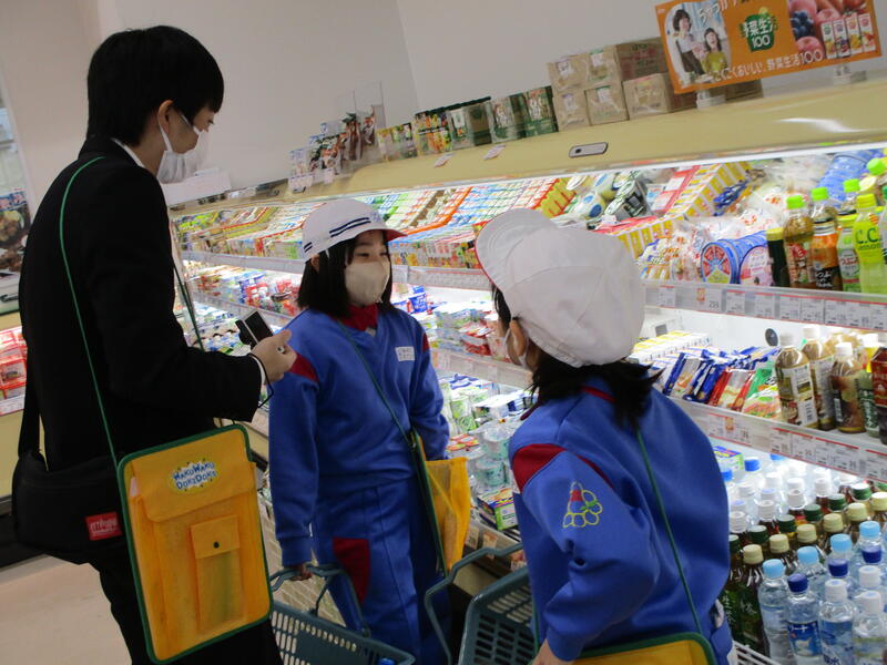 10月6日(木)3年生は、社会科の学習の一環で小高ストアに見学に行きました。いつもは入れないバックヤードにも特別に案内していただき、商品のストックが並んだ棚や、冷凍室、タブレットでの発注システムなどを実際に目にすることができました。給食で使う野菜や果物も毎日小高ストアから届いていると知って、「えー!そうだったんだ!」と驚いてメモをとる姿も見られました。最後にお買い物体験もさせていただき、お菓子や飲み物、野菜などを買って大満足の社会科見学となりました。お忙しい中、子どもたちの対応をしてくださった小高ストアの皆様本当にありがとうございました。