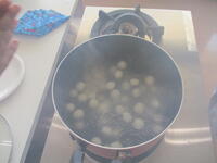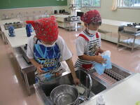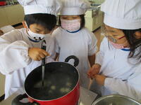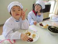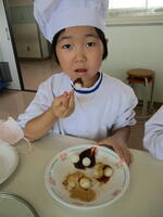 米粉に水を入れてこね、手に油をぬって上手にまるめました。おだんごがゆであがる間に、使った道具を協力して洗うこともできました。機会があったらおうちでも作ってみてくださいね。