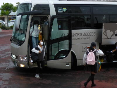 一泊二日の外国語研修を終えた6年生が無事に学校に到着しました。小高小学校にはALTの先生が常駐しています。ブリティッシュヒルズで経験したことを生かして、授業や日常生活の中でどんどん英語を使うことにチャレンジしてもらえればと思います。二日間お疲れ様でした。