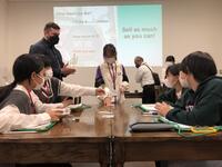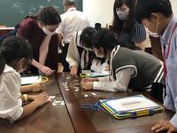 ブリティッシュヒルズに滞在中に使う表現を学習です。カードを組み替えて文章を作りました。チームで協力できました。