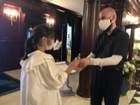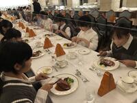 そして、食事です。少し緊張した様子でしたが、ナイフとフォークを上手に使いながら、おいしくいただきました。