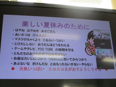 やくそくを守り、楽しい夏休みを過ごしてくださいね。