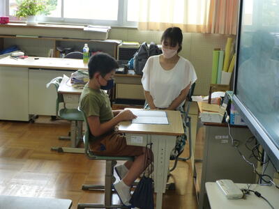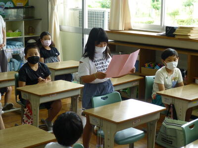 6,4,2年生の代表の子が、1学期のふり返りと夏休みや2学期にがんばりたいことを発表しました。