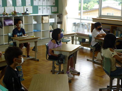 「社会を明るくする運動」は,誰もが安全に安心して暮らせる地域社会をつくることを目指し,毎年7月を強化月間として全国的に展開されています。本日は相馬地区保護司会小高支部の皆さんが来校され,意見交換などを行いました。また,児童へマスクやウエットティッシュ等もいただきました。どうもありがとうございました。