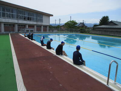 6月17日(木)晴れ間をぬって、6年生はプールに入りました。密にならないように、大声を出さないように気を付けながらも1年ぶりのプールに大喜び。体を慣らすため、プールの端から端まで歩くだけで満面の笑顔でした。梅雨も始まりましたが、なるべくたくさん泳いで水泳のスキルを上げたり心肺機能も高めたりするだけでなく、有事の際に対応できるようにしていきたいです。