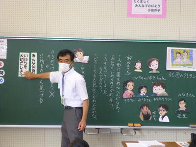 本日の2校時に,4名の人権擁護委員の方々にご来校いただき,4年生の人権教室を実施しました。DVDを視聴し,偏見や差別について考えました。