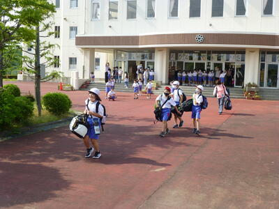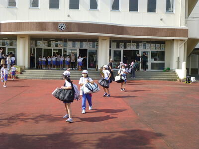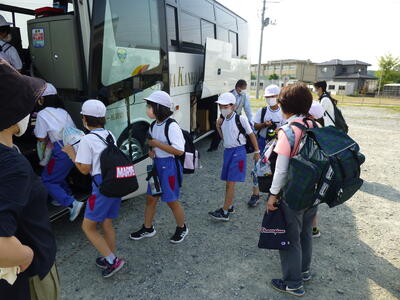 本日から2日間,5年生はいわき海浜自然の家において宿泊活動を行います。先ほど出発式を終え,他の学年の児童に見送られながら,元気にいわきに向けて出発しました。宿泊活動のテーマは,「みんなで協力 自分から行動」です。よい思い出をたくさん作ってきてください!