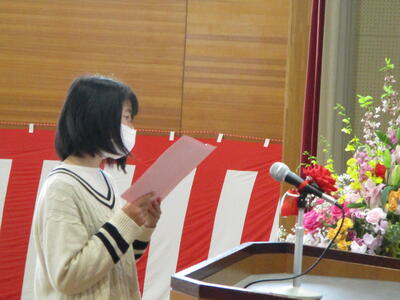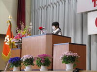 6年生の代表の子が歓迎のことばをおくります。