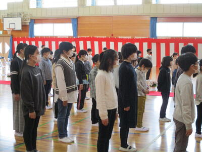 校長先生からは、3つのがんばってほしいこととして「元気にあいさつや返事をすること」「いじめは絶対にしないこと」「交通安全に気をつけること」,「小高の子は、元気がよくて他の人にやさしくできる子」とのお話がありました。