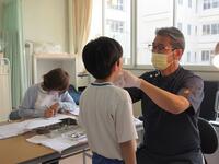 2022年4月12日 16時10分今年度の健康診断が始まりました。今日は歯科検診です。学校歯科医である今村歯科・矯正歯科医院の今村先生に診ていただきました。1人1人ていねいにみていただき、みがき残しの場所だけでなく、爪かみや頬杖などの癖が歯並びに関係していることも教えていただきました。なかには、今村先生に質問する子ども、歯科検診後すぐに歯みがきをする子どももいました。