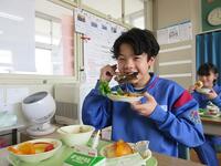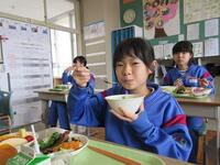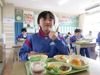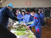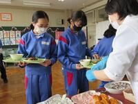 この「お楽しみ給食」は、以前はバイキング給食という形式でしたが、新型コロナウイルス感染症の影響もあり、教職員が配膳を手伝い、衛生面に配慮した形式で実施しています。