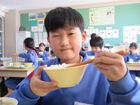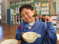 残念ながら、毎年恒例の「おにぎり(給食の起源と言われており、南相馬市では年に1度自分でおにぎりをにぎって食べていました。)」の給食ではありませんでしたが、子ども達は、海苔を混ぜご飯風にしたり、箸を使って海苔をご飯に巻いたりして、工夫して食べていました。箸を器用に使うのは苦手という声も聞こえてきましたが、日本の文化である箸も上手に使いこなせるようになってほしいですね。