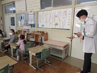 小高小学校の学校薬剤師の先生においでいただき、学校の環境衛生を見ていただきました。給食室の衛生状態、各教室換気の状態や教室の明るさなど設備だけでなく、感染症対策についても見ていただきました。