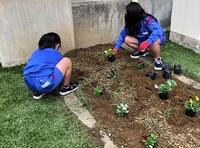 地域の方と一緒にサツマイモを栽培しました。時々、草むしりにいったりと、とても頑張っていました。
