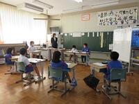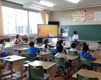 始業式の後は、保健主事の先生のお話です。かぜ、胃腸炎、新型コロナウイルス感染症など、様々な感染症が流行しやすい時期です。正しい手洗いの方法やハンカチを携帯することの大切さを改めて考えることができました。