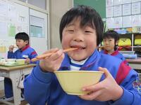 2022年1月13日 15時45分今日の給食の麦ご飯の麦は、相馬アグリ様よりいただいた「もち麦」です。普通の麦ご飯よりも、プチプチといた食感の麦です。一粒一粒、食感を楽しみながら味わって食べている子どももいました。