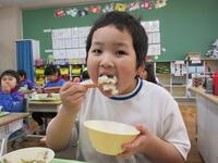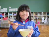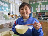 今日の給食の麦ご飯の麦は、相馬アグリ様よりいただいた「もち麦」です。普通の麦ご飯よりも、プチプチといた食感の麦です。一粒一粒、食感を楽しみながら味わって食べている子どももいました。