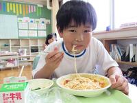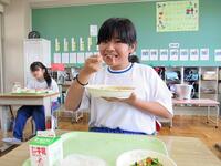 今日は「のまたん献立の日」、南相馬市産食材活用デーです。南相馬市産の「トマト」が使われた「ツナとトマトのスパゲッティ」です。今ちょうど3年生の社会では、「南相馬市の農業」について勉強してしています。社会の学習と食育をつなげておいしく学ぶことができたようです。