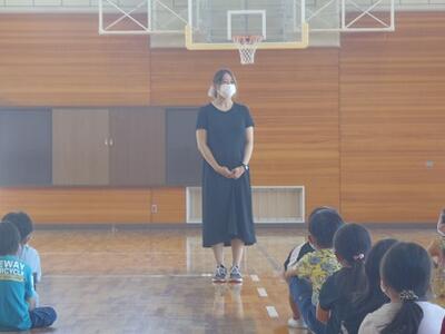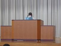終業式の後、産休に入られる先生から、全校生にあいさつがありました。