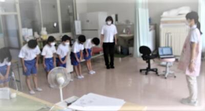 保健室に入ると、まずは身体計測でお世話になる保健の先生にあいさつをしました。
