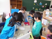 本の貸し出しも、以前の小高小学校と同じ、バーコードシステムです。図書委員の5・6年生が貸し出しを行う姿に、「学校らしさ」が戻ってきたことを実感しました。