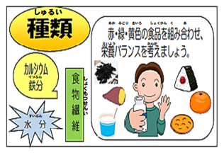 今月の掲示板では「食べ物と健康について知ろう」というテーマで、寒くなるこの時季なので風邪予防について紹介しました。風邪の予防には「ビタミンACE(エース)」がキーワードです。