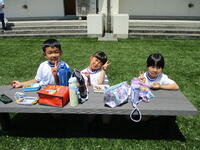 朝から「今日のおべんとうには、○○が入ってるんだよ!」「お家の人が作ってくれたんだよ!」「早く食べたーい!」ととても嬉しそうに話す子がたくさんいました。天気がよかったので、1年生と6年生は中庭で食べていました。本来であれば友達と会話を楽しみながらといきたい所ですが,みんなしっかりと同じ方向を向いて,黙食を心かげました。